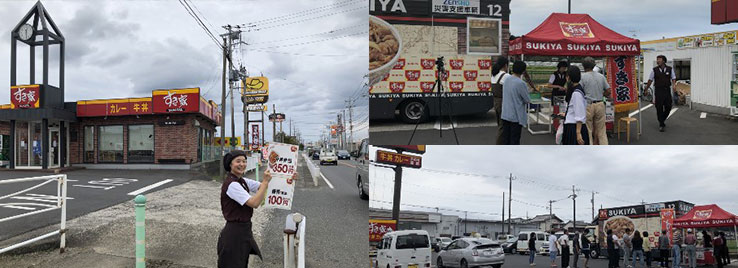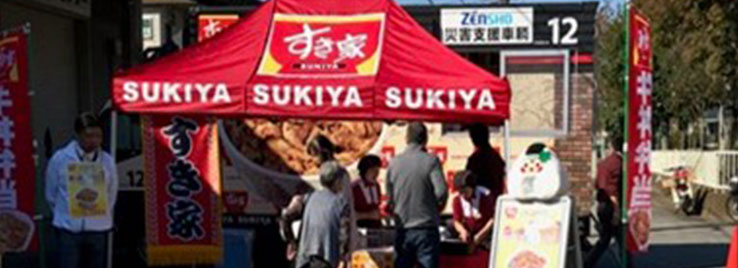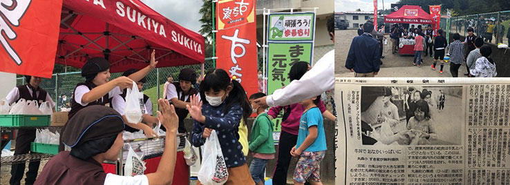 すき家では被災地の方々に対し、牛丼の無料提供を実施しました。