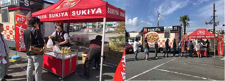 すき家では「食のインフラ」としての機能を果たすべく、9月12日(水)から9月14日まで、キッチンカーによる炊き出しの支援を行いました。